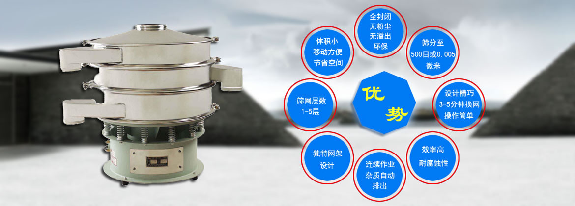 旋振篩是一種高精度細粉篩分機械,由立式電機作激振源,電機上、下兩端安裝有偏心塊,將電機的旋轉運動轉變為水平、垂直、傾斜的三次元運動,再把這個運動傳遞給篩面,所以也叫三次元振動篩。全封閉結構,適用于粒、粉、粘液等物料的篩分過濾。