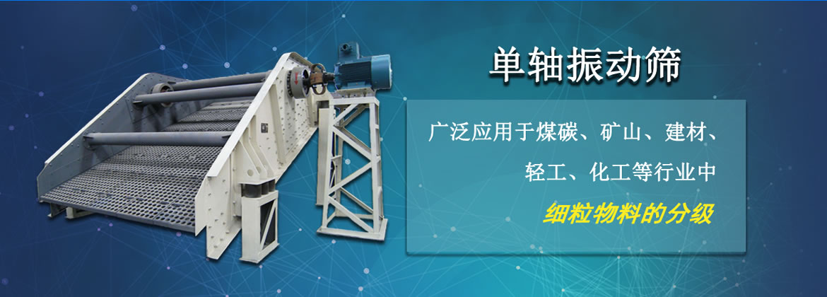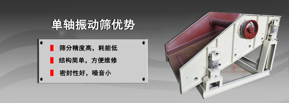 單軸振動篩有一個十分牢靠的篩箱,因為其結構是焊接及鉚接而成,在振動器的主軸上不僅中間位置有偏心軸,而且主軸兩頭也有能夠調節的偏心輪。在篩分時,電動機經由三角帶作用于振動器,傳動軸使偏心軸及偏心輪產生慣性力,這種慣性力會令篩箱作近似的圓形的運動,使物料得到了較佳的篩分效果。