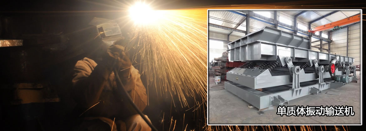 SSL共振式振動輸送機是利用激振器使料槽振動,從而使槽內物料沿一定方向滑行或拋移的連續輸送機械。激振器在電機驅動下產生周期性振動力,通過傳動機構傳遞到輸送槽,輸送槽在激振源的帶動下按激振源相同的振動頻率產生周期性線性振動,同時振動力方向與輸送槽體輸送方向呈一定的拋料角,槽內物料在強迫振動力的作用下沿槽體輸送面連續跳躍向前移動。除激振機構某些零部件外,相對轉動部件很少。物料在振動輸送機中呈現拋射狀態輸送,對輸送槽的磨損較小。